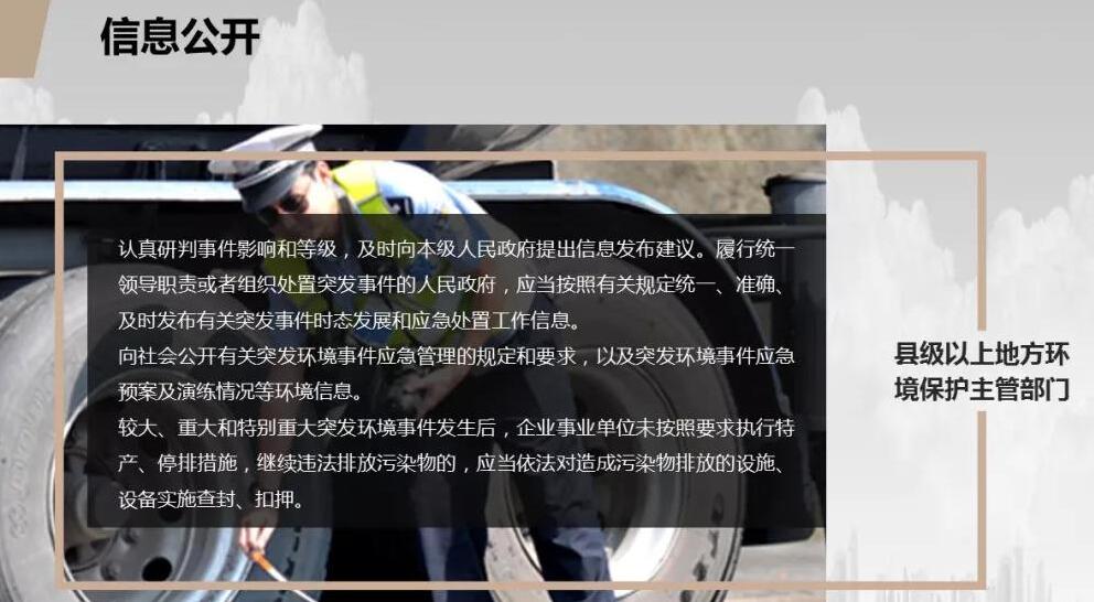 應急預案與風險評估,落實環境安全隱患排查治理,實現從“源頭”到“末端”的環境安全全過程管理,建立環境安全隱患排查治理檔案,核定并完善重點風險源基本信息。要按照“屬地管理”和“行業監管”原則,將監督企業隱患排查整治工作納入污染防治、環境監察的日常工作中,重點抓好環境風險企業的風險防范設施設備建設和正常運行、風險評估和應急預案編制備案、開展風險隱患排查整治和完善風險管理臺帳、應急物資儲備和救援隊伍建設、應急管理培訓和演練等五個方面的監管工作。